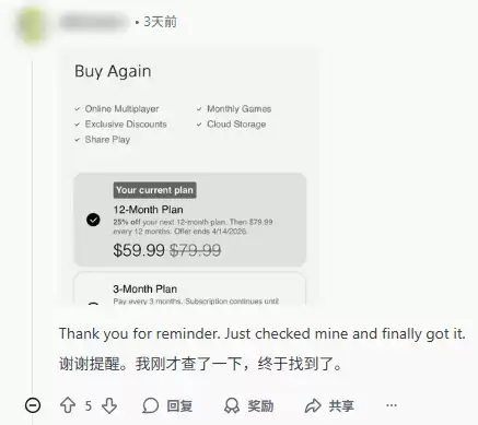 近期在 Reddit 等玩家社区中,关于 PlayStation Plus 折扣的讨论非常热烈。有用户分享,其在续订 Premium 高级档位时,意外获得了高达25%的费用减免。深入分析表明,此类优惠通常有一个明确的触发时机——即用户年度订阅即将到期前的“续费窗口期”。其商业逻辑在于:这更像是平台为降低用户流失、促进续约而设计的“用户留存策略”,而非面向所有用户的常规促销。
