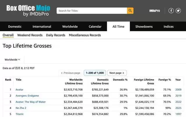 全球影坛迎来历史性时刻!据权威票房统计平台BoxOfficeMojo最新数据显示,国产动画电影《哪吒之魔童闹海》(以下简称《哪吒2》)全球累计票房于今年4月8日正式突破22.67亿美元。这一成绩不仅刷新了中国电影票房纪录,更一举超越经典巨制《泰坦尼克号》,强势登顶全球影史票房榜第四位。一部源自中国神话的动画作品,能在世界范围内取得如此卓越的商业成就,其背后所代表的文化影响力与产业突破,远非单一票房数字所能概括。