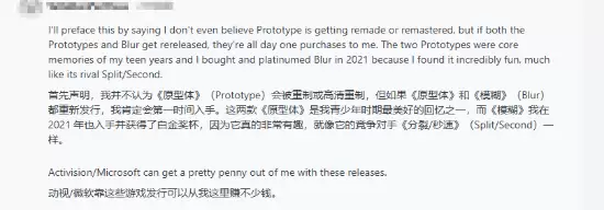当然,市场反应并非完全一致。有玩家表示,虽然对《虐杀原型》能否重制持观望态度,但如果《虐杀原型》和《疾驰残影》这两款经典都能以重制版形式回归,自己一定会毫不犹豫地在首发日支持。这份情怀不难理解:《虐杀原型》系列承载了无数玩家的青春记忆;而《疾驰残影》在核心赛车游戏爱好者中一直享有极高声誉,甚至有人在2021年仍购入游戏并成功达成白金奖杯,盛赞其紧张刺激的赛道设计与破坏玩法,游戏乐趣丝毫不输于同期竞品《Split/Second》。