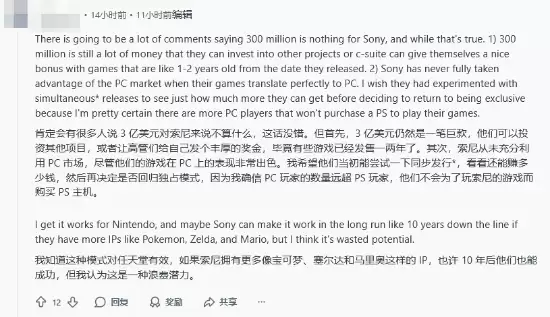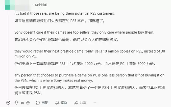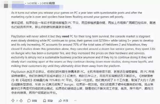 围绕着这“3亿美元”的价值,玩家群体迅速分成了立场鲜明的两派。一方观点认为,索尼为了开拓PC市场付出巨大,但收获似乎有限,甚至可能动摇了其赖以成名的“PS独占”金字招牌,颇有几分得不偿失的意味。在他们看来,即便就此收索PC业务线,也并非不可接受的选择。
