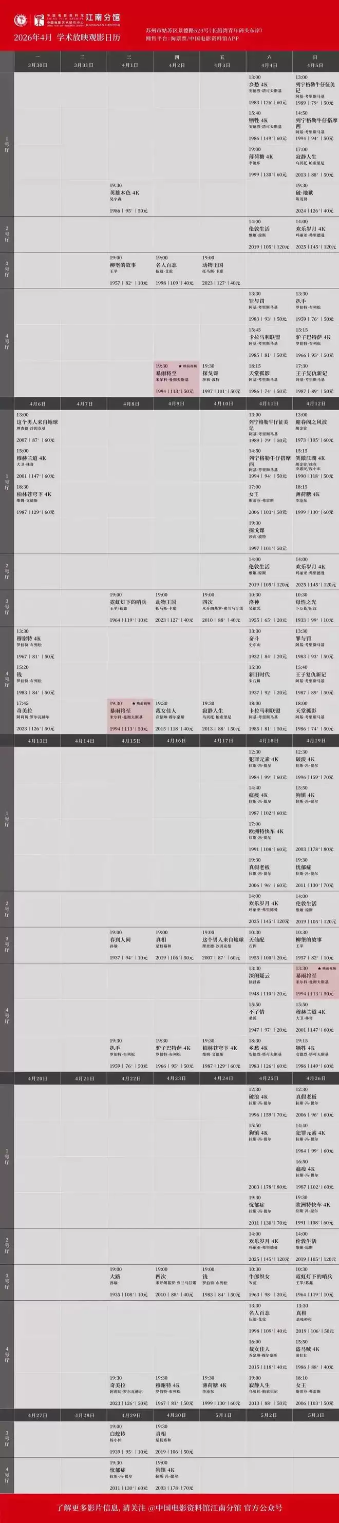 北京、苏州今日电影放映|2026年4月12日周日影讯