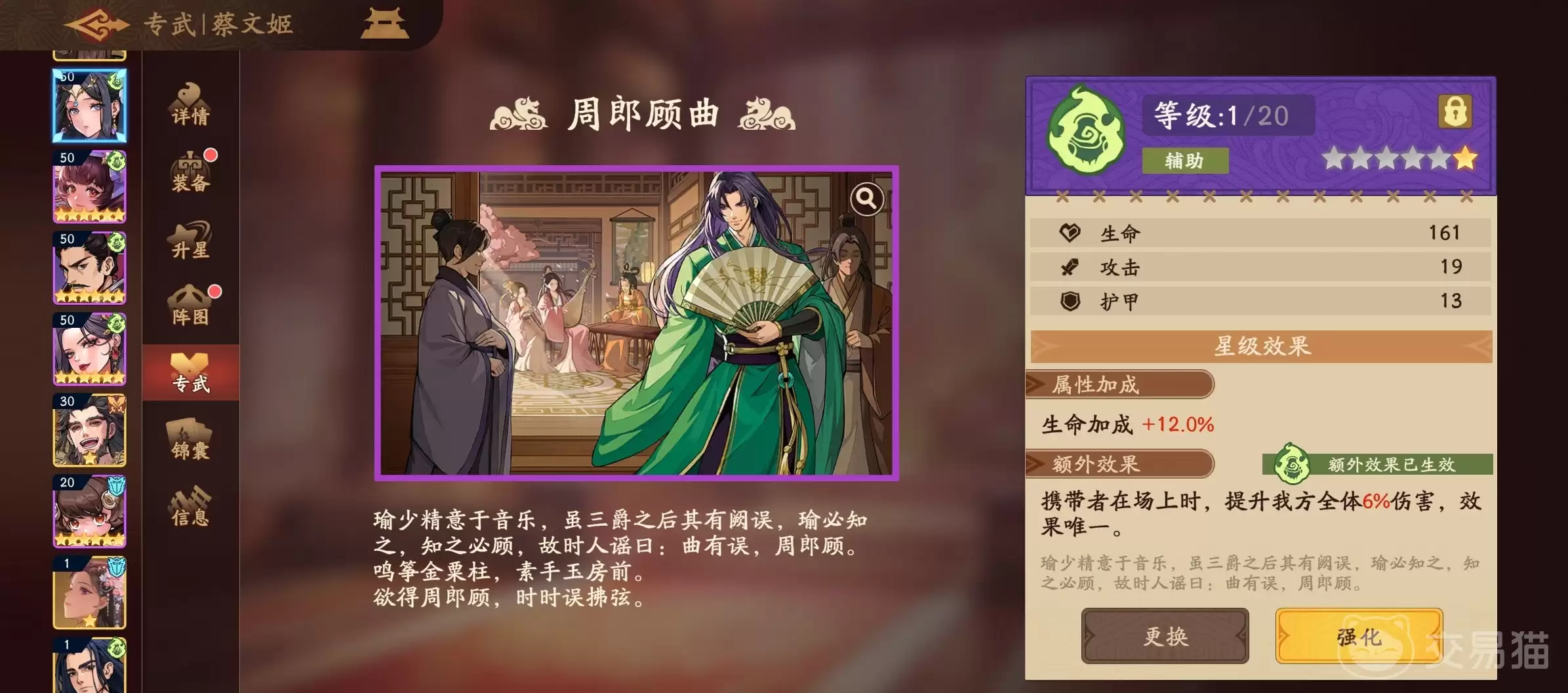 如果说野兽流是“持久战”,那这套体系追求的就是“闪电战”。阵容以蔡文姬为绝对轴心,搭配何太后、夏侯氏、周瑜、关羽。构建时需要注意几个要点:蔡文姬必须全力堆叠速度属性,专武首选“周郎顾曲”或“动员”,锦囊也以高速散件为优;何太后作为二速出手的副引擎,专武建议携带“碎盾”,同样配置高速锦囊,与蔡文姬形成“双推手”结构;夏侯氏负责关键的“点火”工作;而核心输出周瑜和关羽,则在双重提速和增伤的加持下,目标只有一个——在首轮行动中就完成对关键目标的集火秒杀。