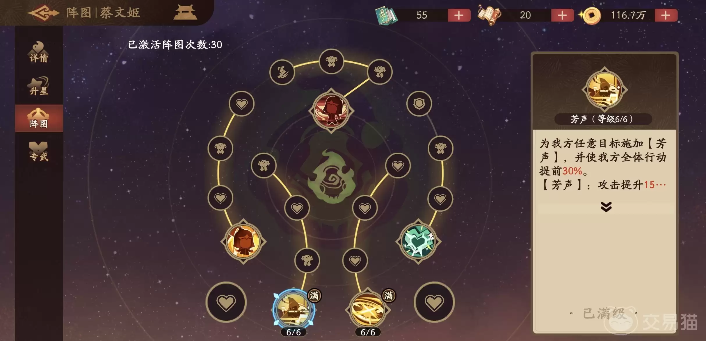 这一切战略价值的根源,都来自其大招“胡笳十八拍”。这个技能的效果堪称豪华:不仅能指定一名友军提升15%的攻击力,更能让我方全体的行动顺序提前30%。这还没完,在天赋加持下,它还会给敌方全体挂上一个“悲歌”状态,让他们承受更多伤害。集团队提速、输出强化和敌方易伤三重效果于一身,蔡文姬完全称得上是战场上的“节奏发动机”。实战中,谁能率先利用好这个先手优势,往往就能在开局阶段建立起决定性的压制力。