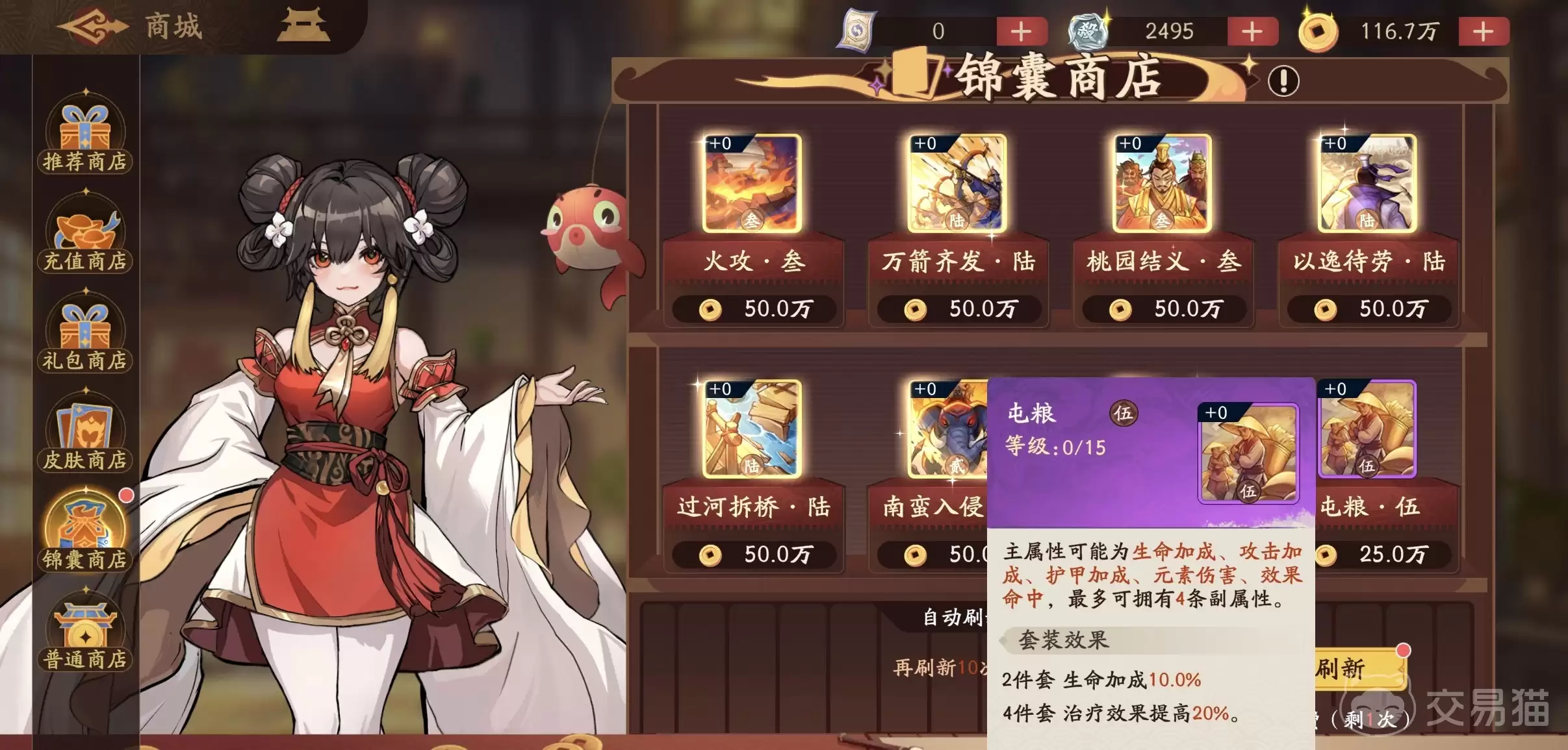基于其技能特性,装备选择的核心思路就是“放大治疗,巩固生存”。专武首推“江东凤仪”,它能直接提升携带者的治疗量,并在每次治疗时额外为目标叠加护盾,这相当于为全队的容错空间上了双保险。锦囊方面,“屯粮”套装是最佳拍档:两件套提升最大生命值,四件套则直接增加治疗效果数值,完美契合需求。在属性养成上,主武器词条优先选择速度与生命值;副属性则建议全部追求生命加成。这套养成逻辑聚焦于两点:一是通过提升速度来加快技能循环,确保关键增益不断档;二是通过堆高生命值来放大治疗基数和自身承伤能力,延长她在战场上的有效作用时间。