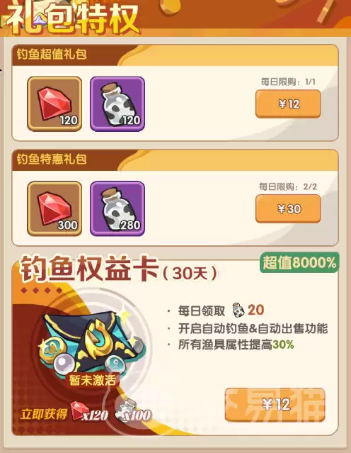 钓获的鱼类可通过便捷的批量出售功能,兑换为银鱼币或金鱼币。一个核心原则是:鱼类等级越高,出售所得货币越多。这两种鱼币是渔场商店的硬通货,可用于兑换限定道具、高级鱼饵以及角色突破、技能升级等关键养成材料。此外,“钓鱼权益卡”能极大优化游戏体验:激活后每日可领取钻石与恢复体力的牛奶瓶,并解锁自动钓鱼与自动出售功能,实现全天候资源积累。权益卡还附带渔具属性提升,进一步增加稀有鱼的上钩率,对于志在收集全图鉴、最大化资源收益的玩家而言,具有极高的性价比。