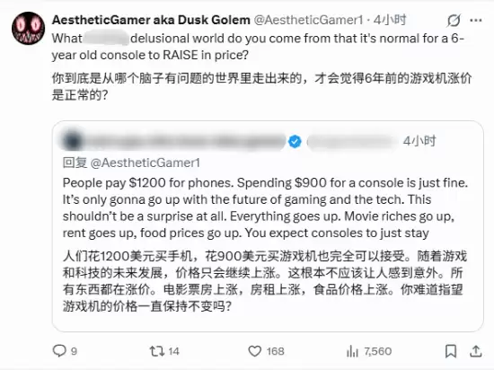 这番观点获得了不少玩家的认同,但也出现了截然不同的见解。一位视频内容创作者从消费对比角度提出反驳:“如今许多人愿意花费1200美元购买一部智能手机,那么为何不能接受900美元的游戏主机?纵观当前市场,电影票价、住房租金乃至日常食品价格都在上涨。难道只有游戏主机应该保持数十年不变的价格吗?”