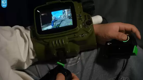 那么,这款改造后的哔哔小子究竟具备哪些实用功能?与市面上常见的展示性周边不同,它是一款全功能的移动计算设备。其内部集成了Steam Deck的完整主板与芯片,支持SteamOS与Windows双系统启动。这意味着,用户不仅可以佩戴它沉浸式体验《辐射》系列游戏,还能运行Steam游戏库中的各类3A大作。其标志性的绿色用户界面与游戏内的视觉效果同步,完美营造出废土世界的沉浸氛围。