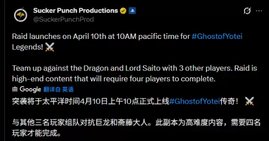 官方在社交媒体上公布了详细情报:“这个全新的‘硬核副本’将于太平洋时间4月10日上午10点正式上线《羊蹄山之魂》奇谭模式。玩家需要组建一支完整的四人小队,共同挑战强大的BOSS斋藤大人。请注意,此副本专为寻求终极挑战的玩家设计,是游戏后期的高难度内容,必须四人组队方可进入。”