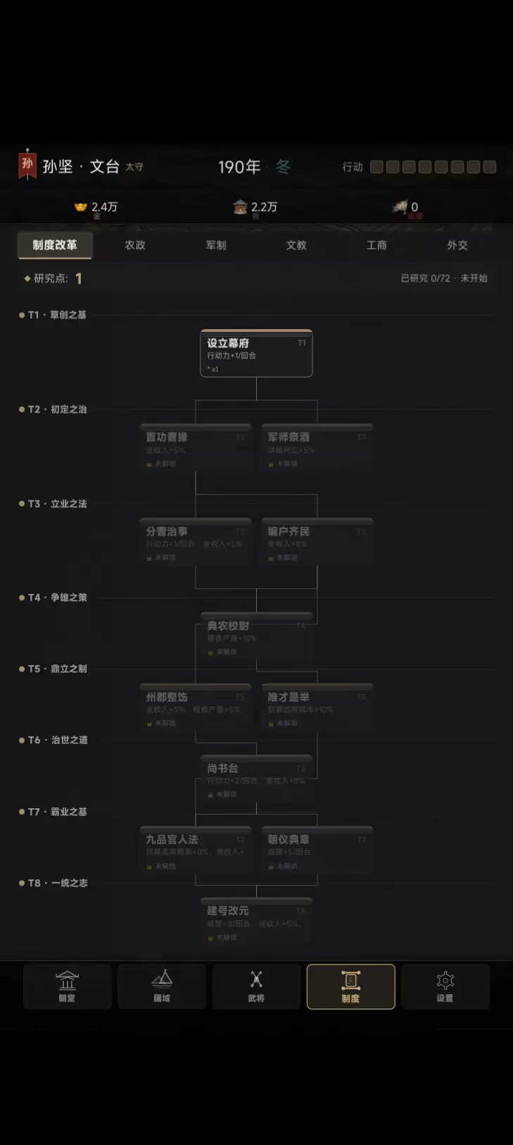 治国理政,运筹帷幄 —— 游戏提供了多达110座城池、15个州郡以及72项可供改革的制度。但有意思的是,每局游戏你最多只能深入研究其中的一小部分,这意味著不存在所谓的“标准答案”或“最优解”,每一次的选择都导向不同的发展路径。