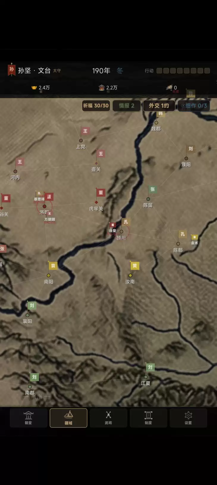 诸侯特性,命运殊途 —— 选择不同的主公,体验截然不同的游戏进程。曹操的“屯田唯才”、刘备的“仁义桃园”、孙坚的“水师归心”……在同一片乱世中,你将走出属于自己的道路。