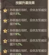 1、技能直接增益。部分僚属的技能自带威仪提升效果。例如,孙思邈的三技能“千金方”,在释放后能为全体友方单位提升威仪属性,这类团队增益技能在PVP和团队副本中价值极高。