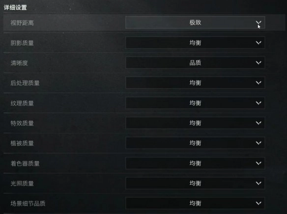 此设置直接影响远处景物与敌人的渲染细节。擅长使用狙击步枪或高倍镜进行远程作战的玩家,建议拉至“极致”,以便更早发现远距离目标。而主打室内CQB或中近距离突击的玩家,选择“均衡”或“高”即可,能在保证流畅度的同时,获得足够的视野信息。