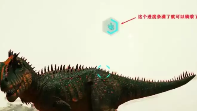 准备工作要做足。穿上吉利服降低视觉暴露度,再喝上一碗仙人掌汤来削弱自身的气味信号,双管齐下,能大幅延迟鲨齿龙发现你的时间。接着,在目标区域附近,找一只三角龙或者剑龙击倒备用。关键来了:拾取尸体时必须长按按键,整个过程绝不能松手——任何中途的停顿,都会立刻被鲨齿龙判定为敌意,瞬间触发攻击状态。拖动尸体时速度要缓,当距离缩短到大约25米时,鲨齿龙便会主动靠近并开始享用这顿“大餐”。此时,屏幕上出现的驯服进度条,就是信任开始建立的明确信号。