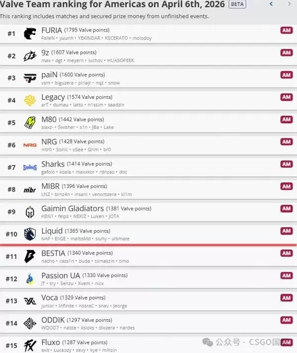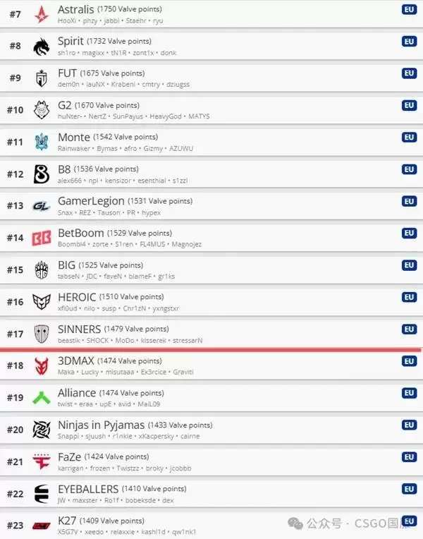 欧洲赛区无愧于“世界电竞中心”的称号,其VRS榜单的竞争堪称惨烈。积分咬得异常紧密,从榜首到中游的分差并不巨大,这意味着任何一场关键比赛的胜负,都可能引发排名上的连锁地震。这里的每一分都价值千金。