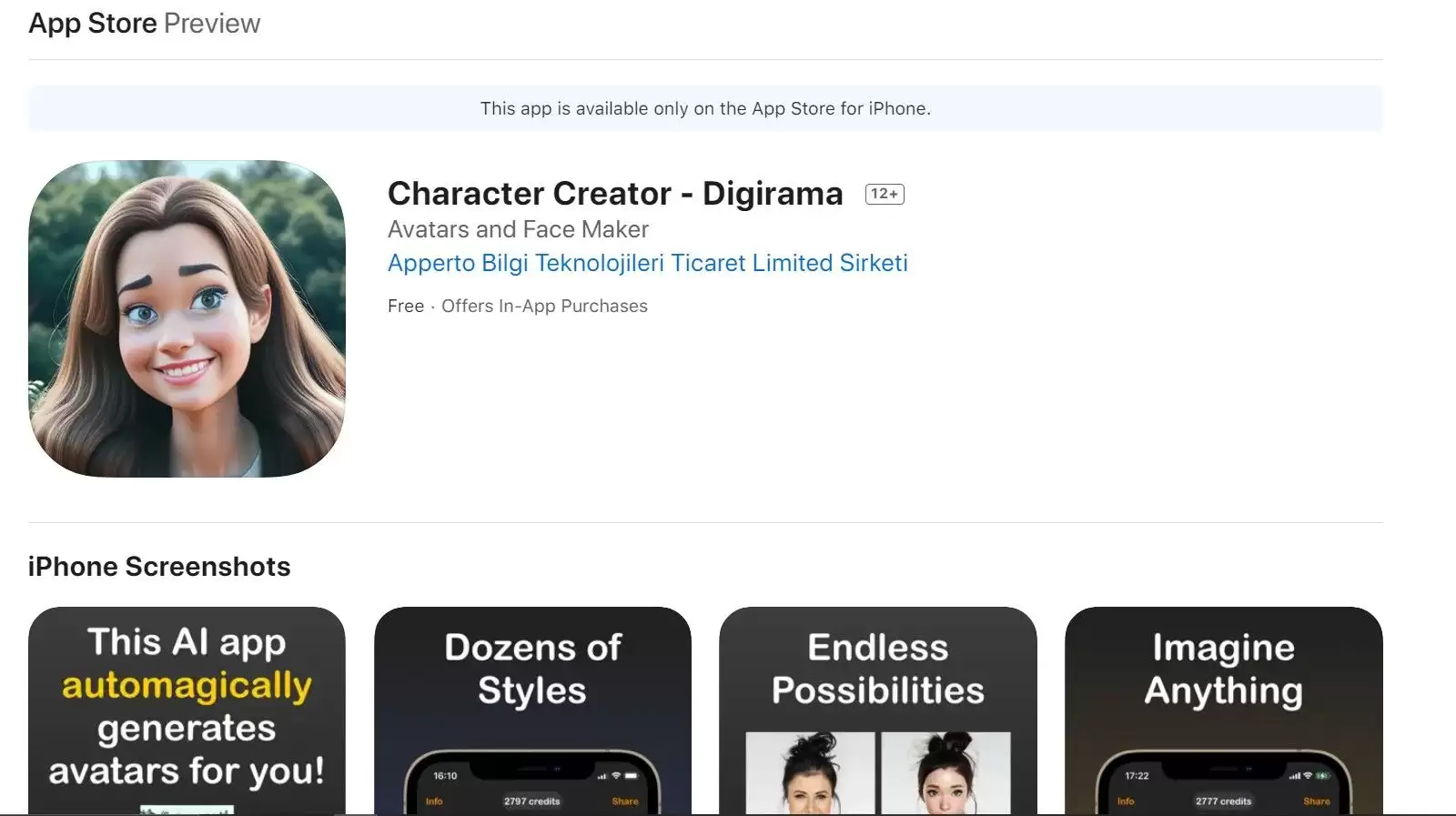 它的官方网站是:https://apps.apple.com/us/app/character-creator-digirama/id6444673721。简单来说,Digirama的核心定位是一个AI角色创建器,并且它以移动应用程序的形式提供服务,让创作可以随时随地开始。