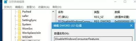 6. 最后一步,双击这个新建的“DisableWindowsConsumerFeatures”值,将其数值数据从默认的0修改为 1,然后点击“确定”保存。这个操作相当于告诉系统,彻底关闭那些基于用户行为的应用推广功能。