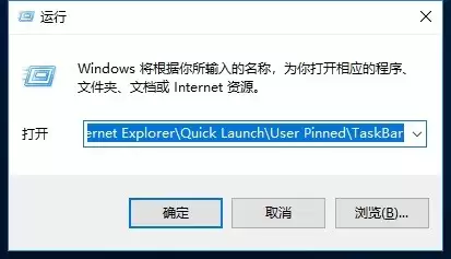 2. 这次输入以下路径:“%APPDATA%\Microsoft\Internet Explorer\Quick Launch\User Pinned\TaskBar”,然后确定。