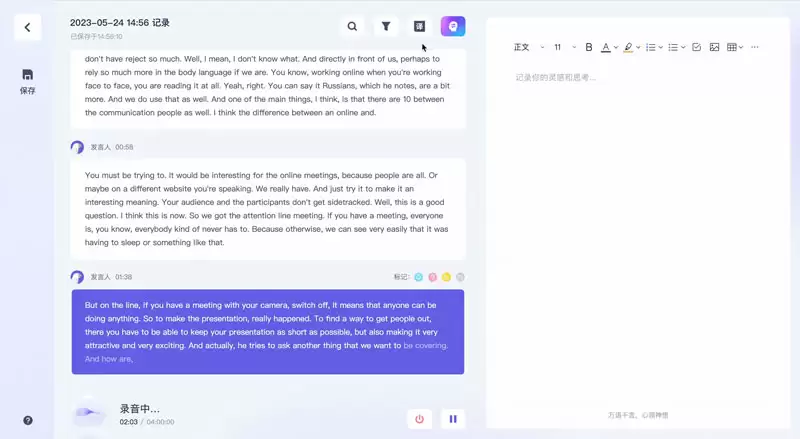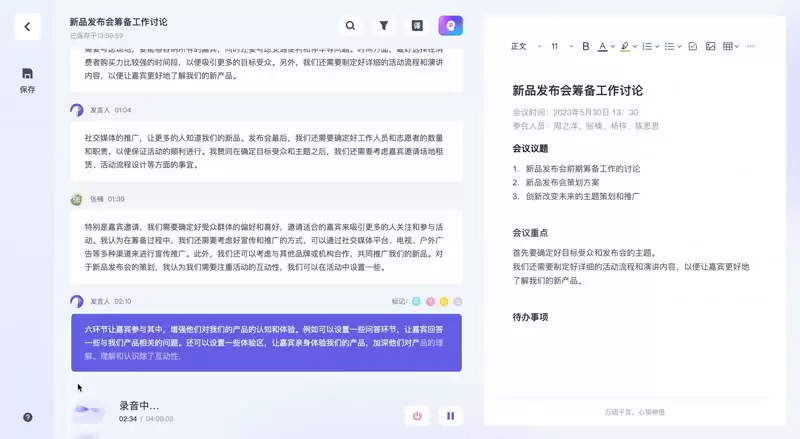 它不仅能将实时语音或已有音视频文件精准转为文字,更能在此基础上进行智能总结、实时翻译与高效的知识管理,堪称是办公提效、内容创作和跨语言协作的有力帮手。