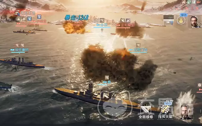 另一位是高速雷击驱逐舰“岛”号。它堪称鱼雷狂魔,配备了八座三联装610毫米鱼雷发射器,基础发射间隔只有短短的8秒。更夸张的是,它每90秒会自动激活持续15秒的“雷火强化”状态,期间鱼雷伤害提升30%,命中后还能给敌方后排附加15%的减伤效果,战术价值极高。不过,需要警惕的是,“岛”号的防空和反潜能力是阵营垫底,绝不能让它在没有掩护的情况下单独行动。通常,它需要与具备区域防空能力的友军舰艇混编,才能安全地发挥其恐怖的雷击能力。