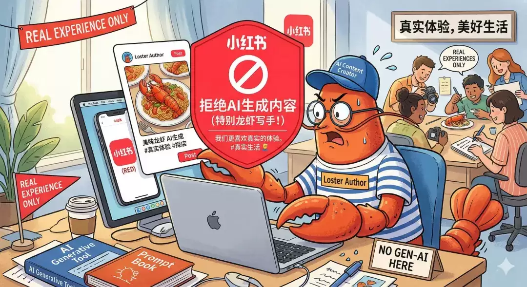 道理很简单,如果平台上的创作者全都用“龙虾”(AI智能体)来生产内容,那么“小红书”(Redbook)恐怕就要变成“蜕壳书”(Moltbook)了——一个只有空壳、没有真实血肉的地方。