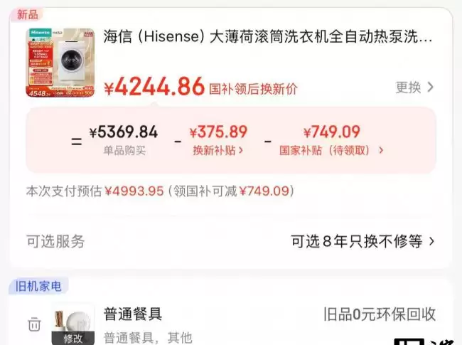 特别注意:下单时需选择“以旧换新”选项,旧物类别可选“厨房小电”下的“普通餐具”,操作起来并不复杂。