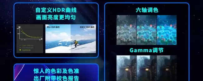 色彩表现方面,它覆盖了99%的DCI-P3色域和97%的Adobe RGB色域,足以应对专业创作和影音娱乐的需求。亮度上,其峰值亮度可达1300尼特(注:SDR模式下的全屏亮度为300尼特),并且通过了VESA DisplayHDR 500认证以及CMR 15000认证,动态画面的清晰度有保障。考虑到长时间使用的舒适度,它还获得了莱茵护眼认证。