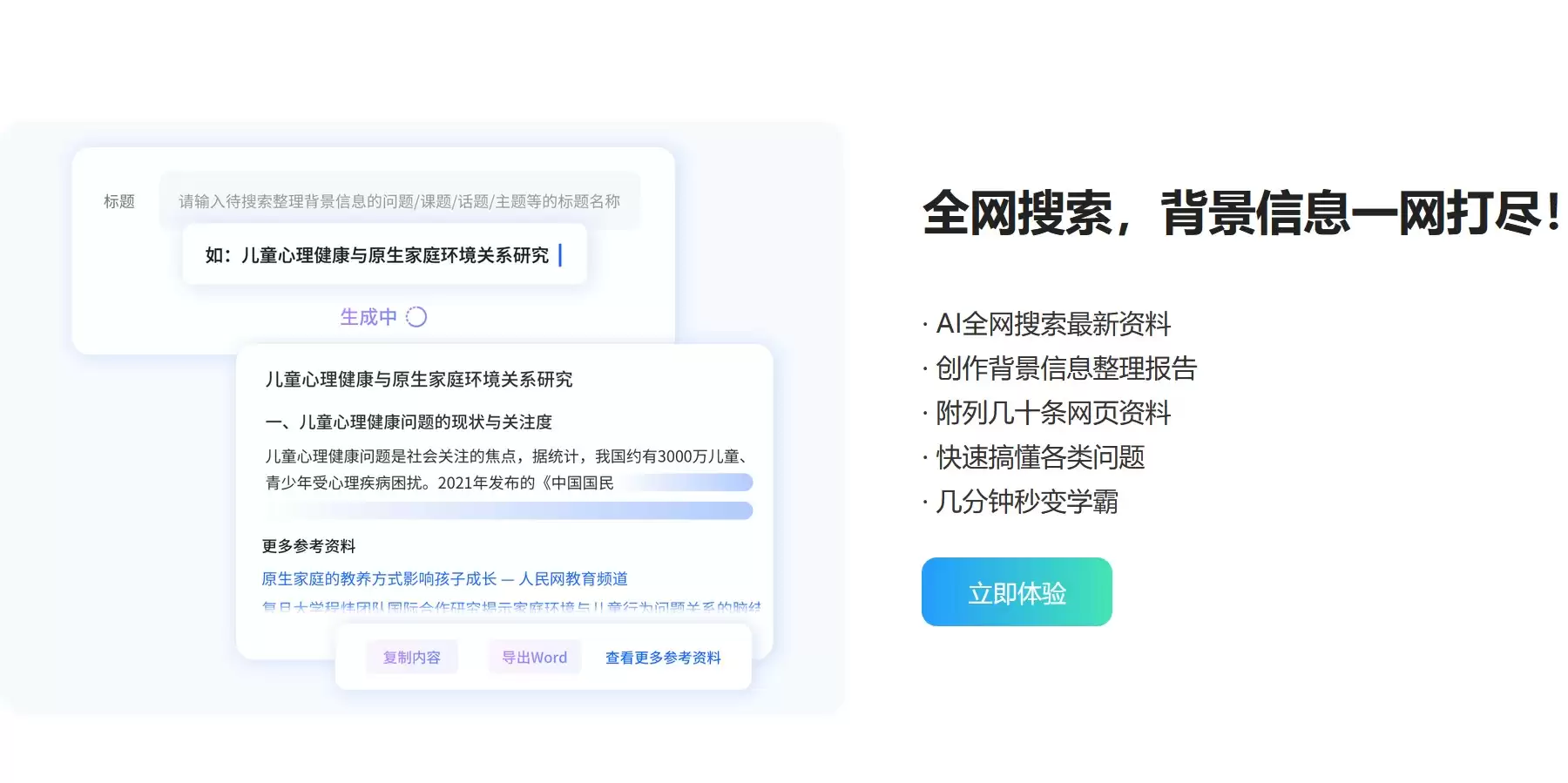 一键创作,化繁为简:面对紧迫的 deadline 或突如其来的写作任务,最宝贵的就是时间。万能小in的设计直击这一需求。用户只需输入核心的写作标题和必要的辅助信息,系统便能在短时间内生成一篇结构清晰、语言流畅的正式文稿。这尤其契合当下快节奏的学习、工作和生活场景,将创作者从冗长的资料搜集和初稿搭建中解放出来。