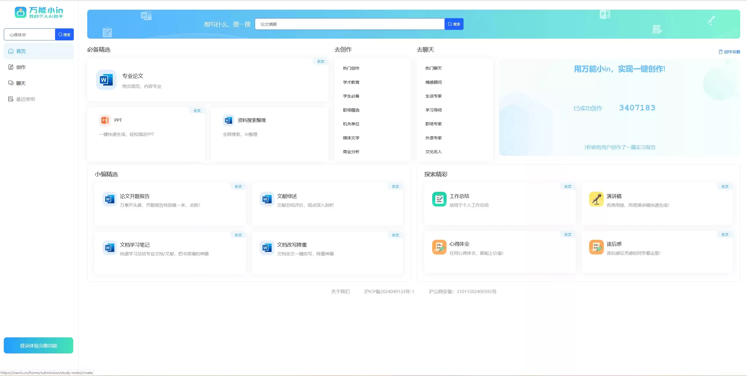 场景全覆盖,应对自如:写作需求是多样化的。万能小in的强大之处在于其广泛的应用覆盖,支持超过百种文体与场景。无论是学术领域的专业论文、职场中的工作总结与实习报告,还是日常所需的演讲稿、新闻稿、读后感,甚至是形式政策分析等复杂内容,它都能提供相应的创作支持。可以说,它致力于成为每一个潜在写作场景中的“瑞士军刀”。