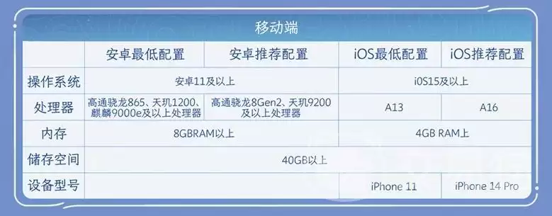最后总结一下关键数字:安装空间,移动端备好40GB,PC端请留出100GB。运行内存方面,安卓8GB起,iOS 4GB起,PC端则根据1080P、2K、4K不同分辨率,覆盖了16GB到32GB的区间。这些数值都是经过测试验证的稳定运行基准,大家可以对照自己的设备情况,心里有个谱,该清理的清理,该升级的,也就可以规划起来了。