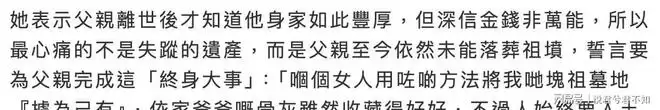 而另一边,却是父亲离世后迟迟无法入土为安的锥心之痛。祖坟地契被所谓的保姆霸占,对方甚至一纸诉状将她告上法庭,意图争夺全部遗产。人生的大起大落,仿佛戏剧般集中上演。