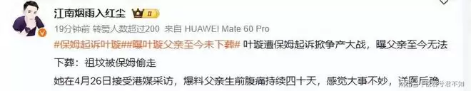 叶璇被保姆起诉夺产!父亲去世1年无法下葬,祖坟地契被保姆偷走