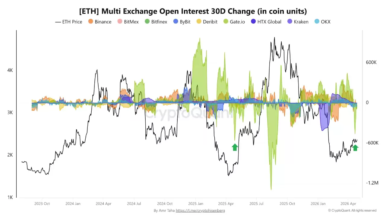 先看未平仓合约(OI)这个关键风向标。4月21日,Gate.io录得30天未平仓合约量变动为-461,000 ETH,这个数字是自2023年有记录以来最大的负值之一。紧接着,币安在4月27日的数据也显示为-81,200 ETH。这意味着什么?以太坊两大核心衍生品交易平台的杠杆头寸,正以2025年4月以来未曾见过的速度同步平仓。