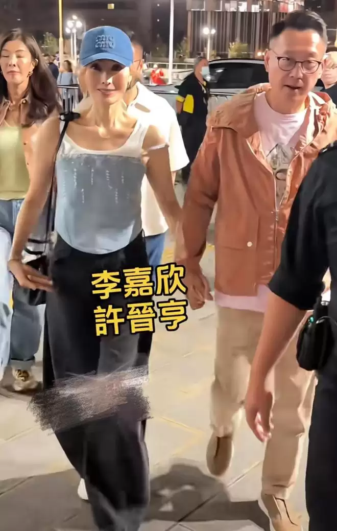 李嘉欣许晋亨合体看演唱会,夫妻俩手牵手好甜,55岁状态超好