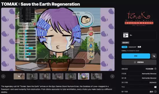 4月2日,Netmarble Monster正式宣布,由Seed9开发、于2001年发售的经典恋爱模拟游戏《Tomak~Sa ve the Earth~Love Story》的重制版《TOMAK:Sa ve the Earth Regeneration》现已登陆Epic Games商店,并开启限时免费领取活动。即日起至4月17日0点,玩家可免费将游戏添加至库中,永久拥有。