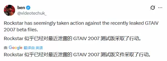前段时间,《GTA4》相关早期内容在网上流传的消息,想必不少玩家都听说了。最近这事儿有了新进展:一向关注R星动态的知名博主Ben透露,这家游戏巨头似乎已经出手,对泄露的文件直接进行了强制下架。
