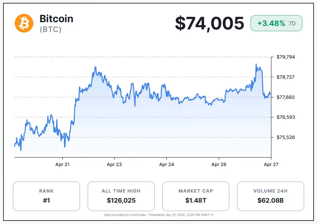 回顾本周的行情,其实相当有戏剧性:开市价在75,000美元中段起步,随后一路飙升至78,000美元上方,甚至短暂逼近了79,000美元大关。尽管此后市场从高点显著回落,但关键点在于,比特币最终守住了大部分战果,稳稳站在74,000美元上方直至周末。这种“冲高回落但根基稳固”的走势,往往比单纯的直线拉升更显健康。