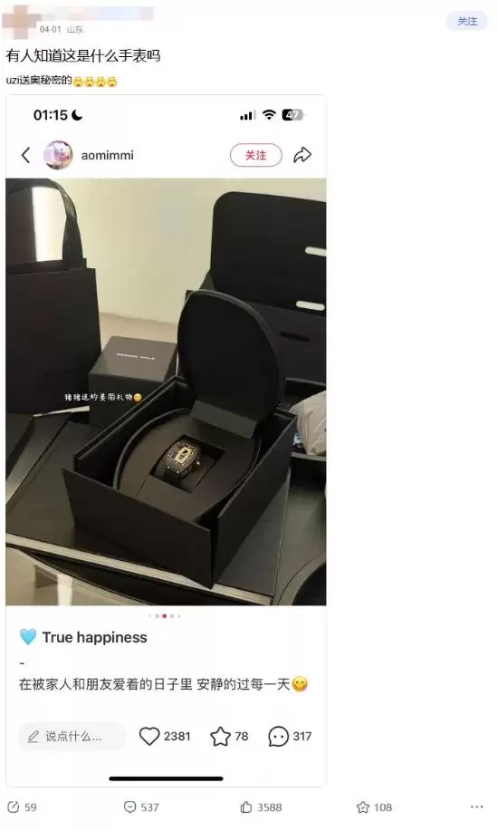 最近电竞圈有个话题热度不低,有眼尖的贴吧网友发现,前《英雄联盟》明星选手Uzi,给妻子“奥咪咪”送了一份重磅礼物——一块疑似价值高达350万元的理查德·米勒手表。消息一出,立刻成了大伙儿茶余饭后的谈资。
