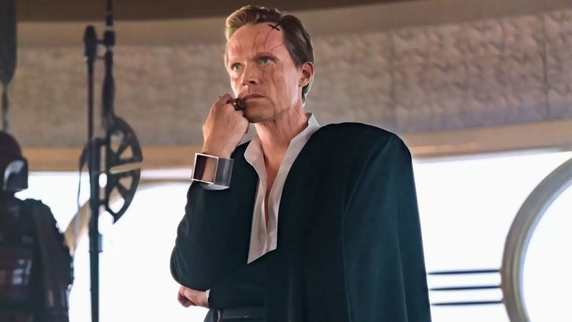 图片来源:Disney/Lucasfilm对于广大星战迷而言,德莱登·沃斯首次亮相是在2018年的电影《游侠索罗:星球大战外传》中。由保罗·贝坦尼饰演的沃斯,性格残忍且睚眦必报,他以“赤色黎明”犯罪集团首领的身份,出现在了年轻韩·索罗的面前。但后来的剧情揭示,这并非全部真相——沃斯的副手琦拉在电影结尾解决了他。紧接着,一个来自“赤色黎明”真正领袖的通讯接了进来,那人正是达斯·摩尔。