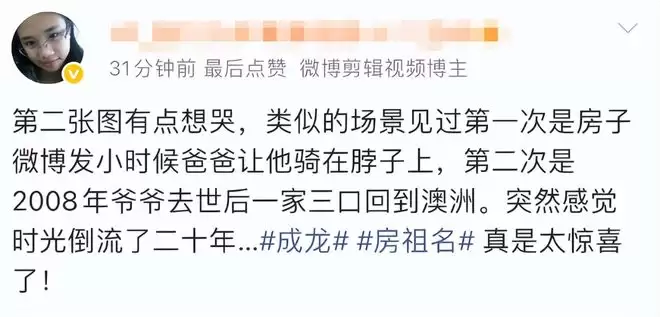 更有网友翻出了房祖名早年分享的童年旧照进行对比。旧照中,年幼的房祖名骑在父亲脖子上,笑容灿烂,而成龙则小心翼翼地托着儿子,眼中满是慈爱。如今再看惠州这张合影,时光仿佛完成了某种轮回——当年天真烂漫的孩童已步入中年,而曾经叱咤影坛的父亲,眉宇间也多了几分岁月沉淀下的平和与温柔。