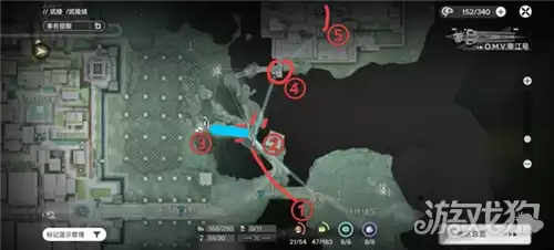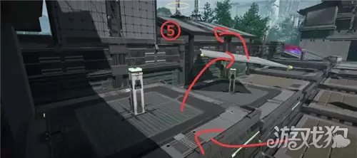 第四步,记得图中划圈的位置吗?那里原本有一个装备模板箱(如果已经拿过就无视)。在这个箱子附近,找一个没有障碍物阻挡的地方,布置第四个滑索点。
