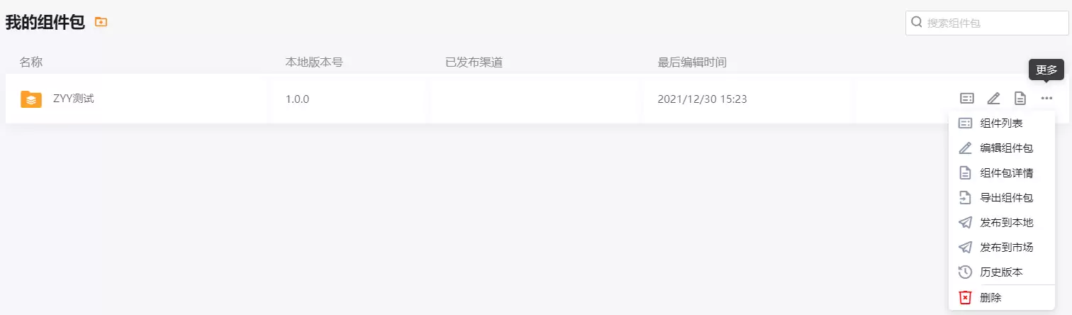 组件包内的所有组件会以列表形式展示,方便用户查看和管理。组件状态主要分为两种: