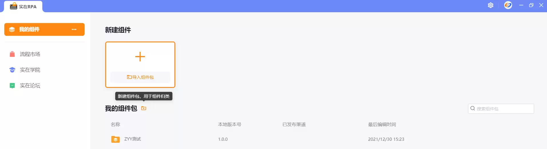 实在智能rpa软件中如何自建组件以及自建组建管理