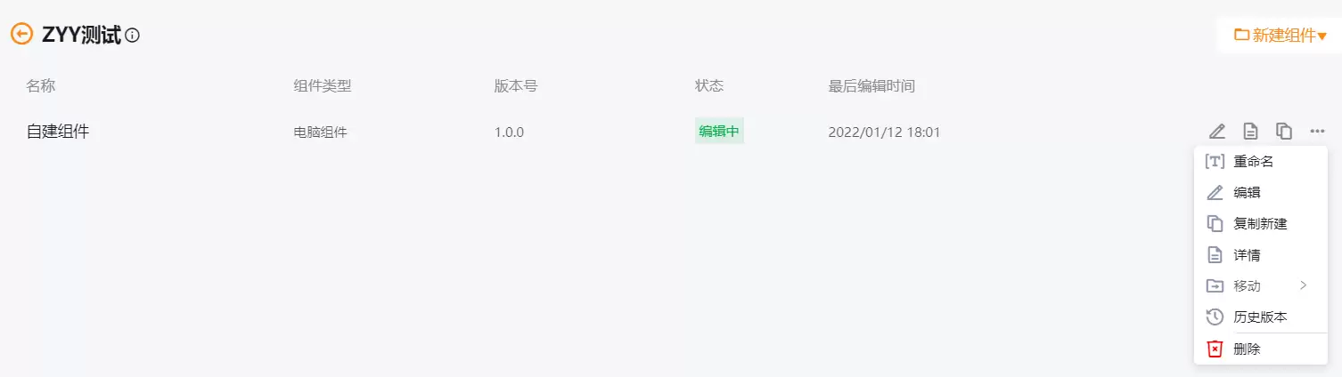 复制新建:可以复制出一个完全相同的组件。新组件名称会自动添加“副本_1”后缀,以便区分。注意,同一个组件包内不允许存在同名组件。