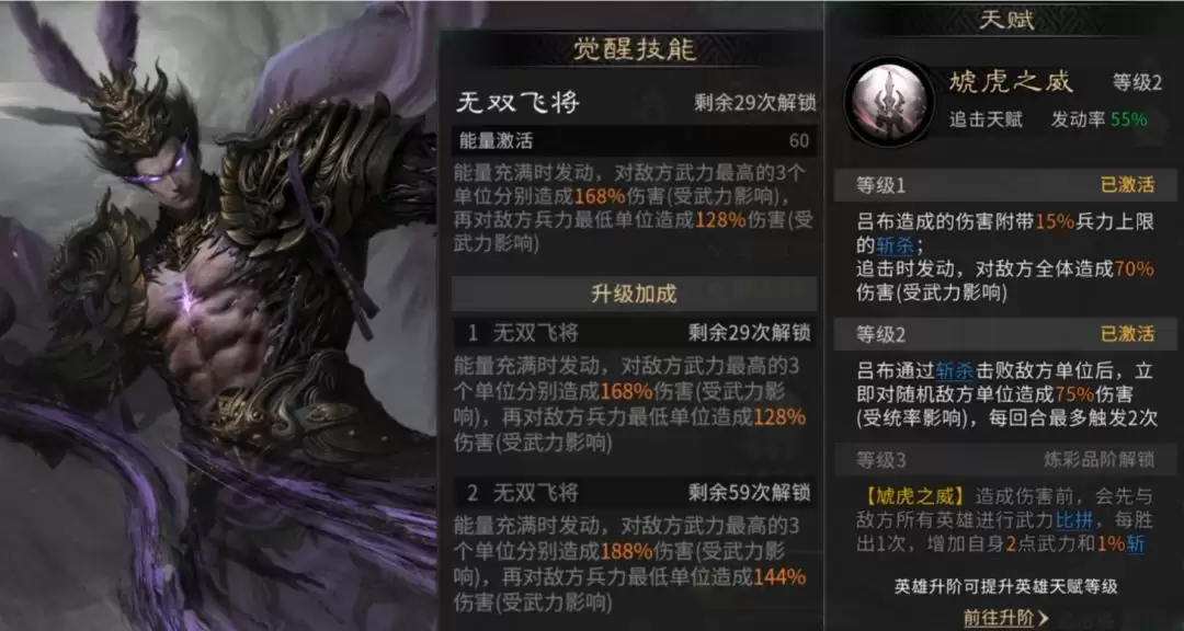 总的来说,觉醒吕布是一位将暴力美学演绎到极致的武将,适合追求速战速决和极致体验的玩家。