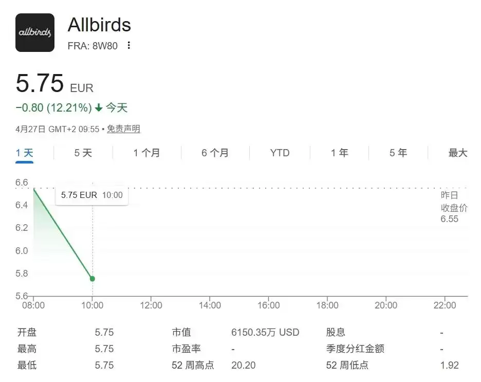 Allbirds 4月27日股价