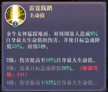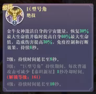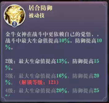 这是一个常驻的生存向被动,永久提升10%生命与10%防御。数值看似朴实,却是金牛女神作为核心承伤角色的基石,所有百分比生命加成的收益都建立在此之上。