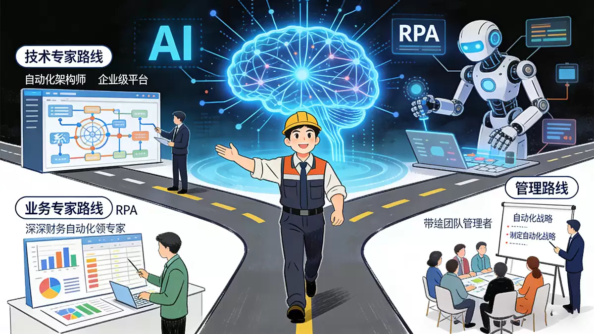 RPA开发只是一个起点。资深从业者的发展方向通常聚焦在三条路径上: