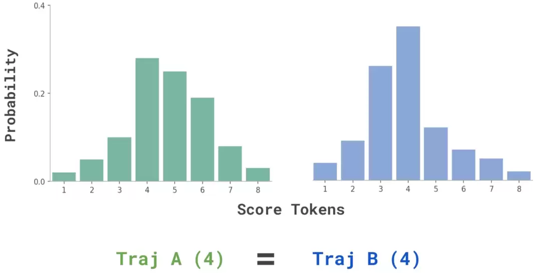 具体操作是这样的:给定一个任务t和两条候选轨迹,LLM-as-a-Verifier会构建评分提示,并通过提取特定评分标记的对数概率,得到对应的条件概率分布。