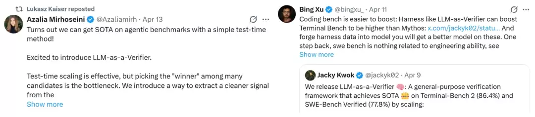 最近,AI社区里有个新框架引起了不小关注,连Transformer论文作者Lukasz Kaiser和GAN之父Bing Xu都转发了。这个框架叫LLM-as-a-Verifier,本质上是一种通用的验证机制,它能和市面上几乎任何智能体框架或模型无缝结合。