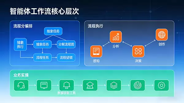 三个基础条件至关重要:一是业务流程的标准化与数字化基础,流程本身需相对清晰可描述;二是高质量的数据接入与整合能力,智能体的决策依赖充足、准确的数据输入;三是跨部门的协同文化与组织支持,因为工作流往往贯穿多个业务环节,需要打破部门墙才能顺畅运行。